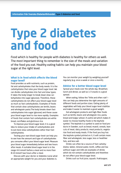 Fler infoblad på svenska finns att ladda ner längst ner på sidan. (även för Diabetes typ1)